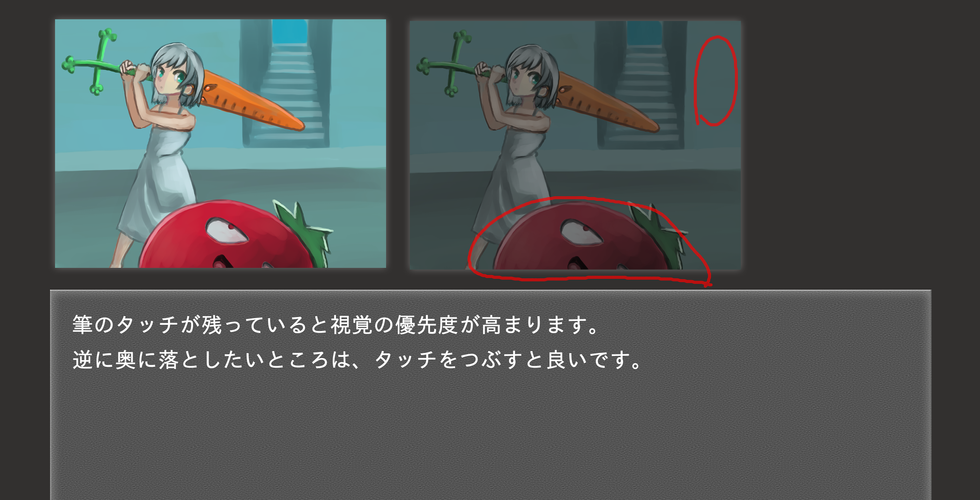 (41)筆のタッチが見える > 筆のタッチが見えない